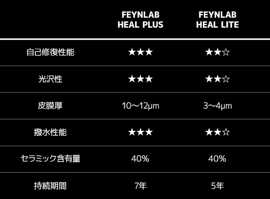 従来のコーティングにはない”自己修復”という新しい技術を搭載したコーティング剤。 FEYNLAB(ファインラボ)は、コーティング自体の被膜に一定の温度の熱を加えて、ボディ小キズの自己修復を可能にした、画期的なセラミックコーティングです。