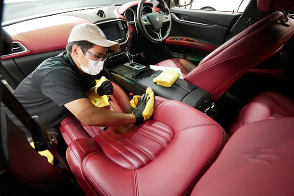 レザークリーニングではレザーの表面の汚れをきれいにし、シートの隙間、凹凸部分もきっちりと汚れを取り除いて綺麗な状態にします。レザーコーティングとセットでご依頼可能です。
