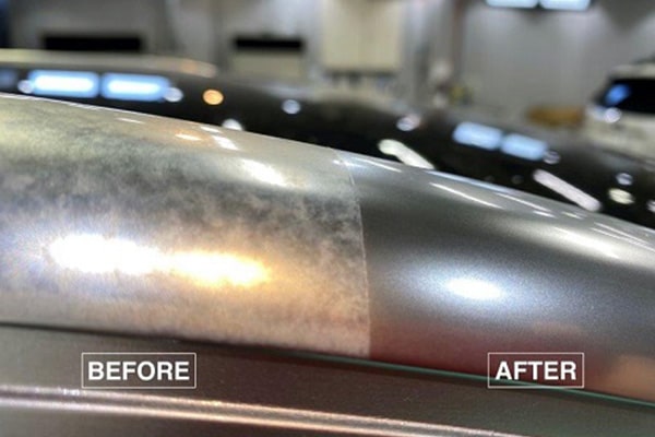 ダブルアクションポリッシャーと特殊専用剤を用いた1工程の磨き処理により、コーティング皮膜上の汚れはもちろん、シミや小傷も除去します。
