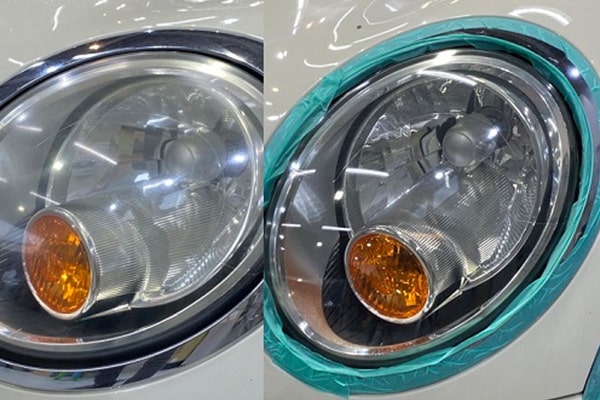 ヘッドライトの黄ばみや曇をポリッシュすることにより取り除き