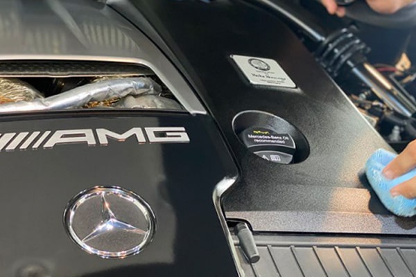 エンジンルーム内の頑固な汚れを専用特殊洗剤で洗浄し、艶出しを行います。